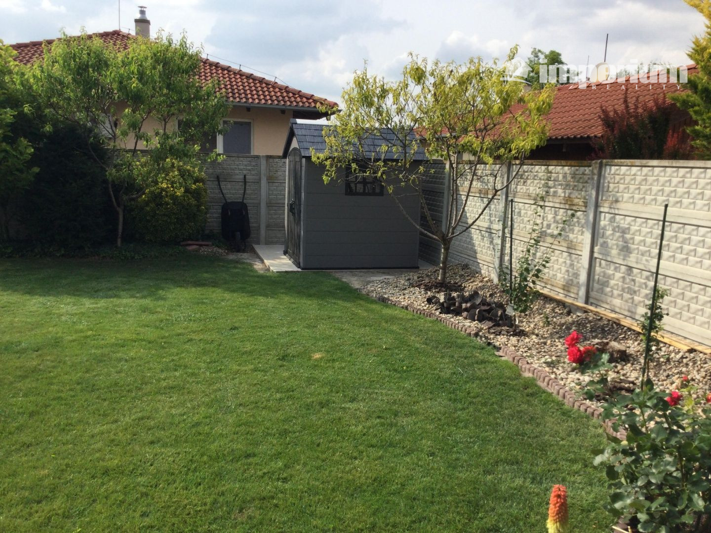 POZEMOK je veľmi pekný, priestranný, s predzáhradkou, oplotený, udržiavaný, so spevnenou plochou pre štyri parkovania pred domom. Odrastené okrasné dreviny, kvety, ovocné stromy a kríky, trávnik s parkovou úpravou, vyvýšené gabiónové záhony s podsvietením, v zadnej časti pozemku je domček na záhradné náradie. Automatické zavlažovanie je samozrejmosťou.