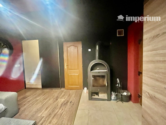 SUTERÉNNE PODLAŽIE : vstup z prízemia schodiskom do obývacej izby ,kde sú krbové kachle s výmeníkom. Technická miestnosť , dvere s možnosť výstupu do zadnej časti dvora.