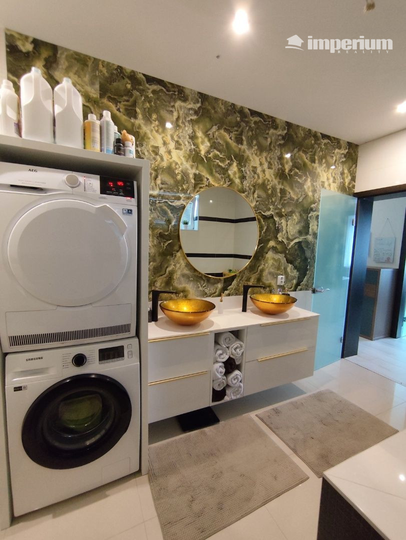- okná plastové, vonkajšie žalúzie s ovládaním - Klimatizácia: s možnosťou ovládania cez aplikáciou - Nábytok: Interiérové dvere a nábytok vyrobený na mieru v luxusnom prevedení. Vo väčšine prípadov sa jedná o dyhované a lakované prvky. - Alarm: predpríprava